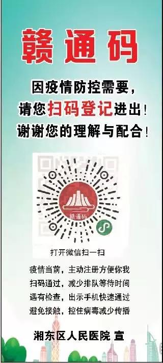前往我院就诊的患者及陪护人员,请正确佩戴口罩,主动出示赣通码,配合工作人员进行体温筛查,保持安全距离,有序就诊。“红码”人员、体温异常人员(≥37.3℃)请遵循医院安排进入发热门诊就诊流程。