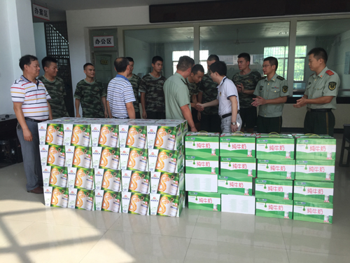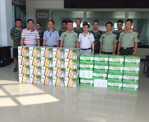 2016-12-14 16:31:14“八一”建军节当天上午,湘东区人民医院易培庄院长、甘斌副院长、保卫科廖科长送去了牛奶等物资问候常年坚守在防、灭火一线的湘东区消防大队全体官兵,并给他们送去了节日的祝福和真诚的问候。