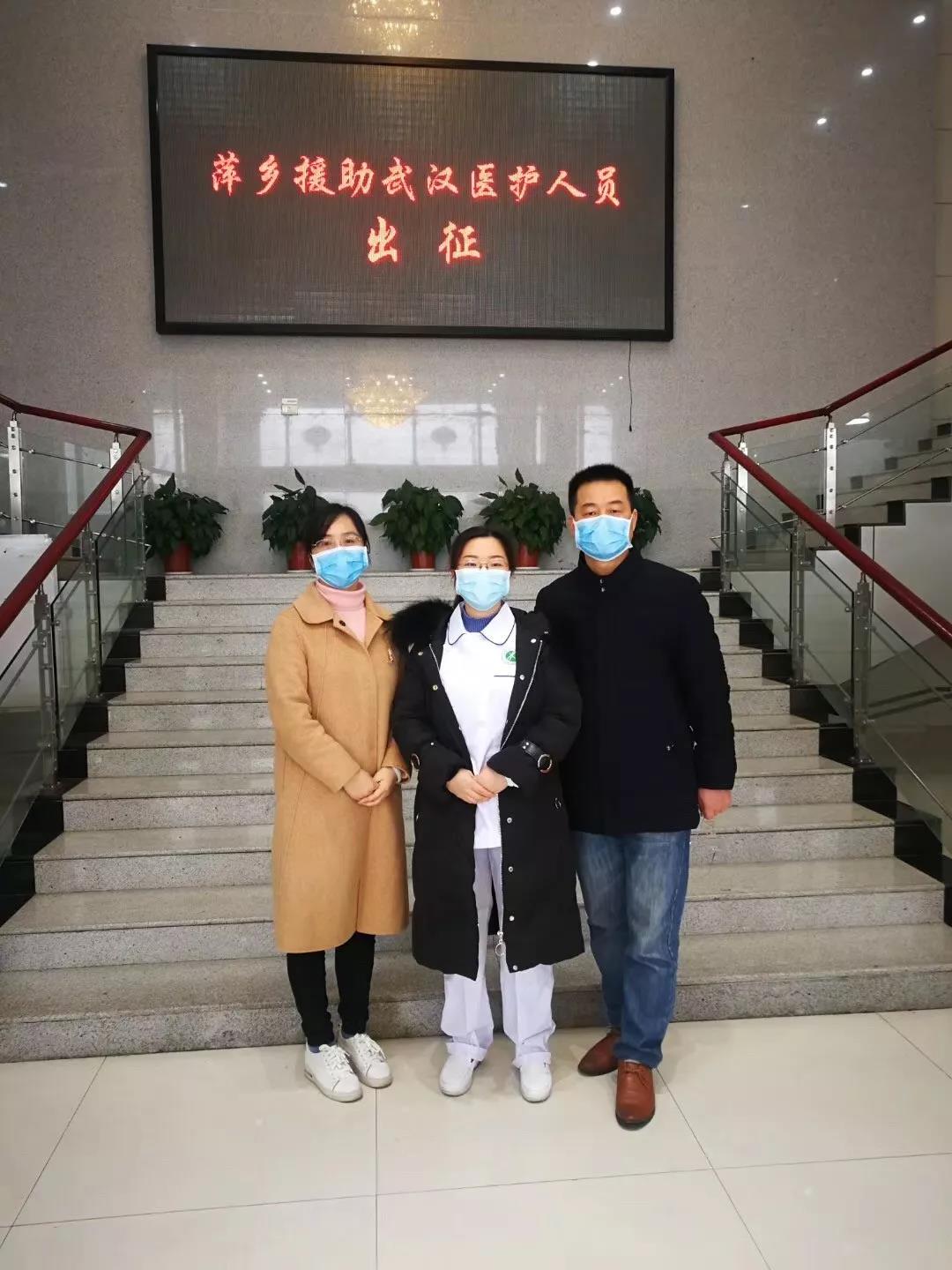 在医疗队员出征前,萍乡市、湘东区各级领导为萍乡市第二批援助武汉医疗队举行了简短而庄重的出征仪式,区卫健委党委委员李敏亲往现场,为李洁送行。