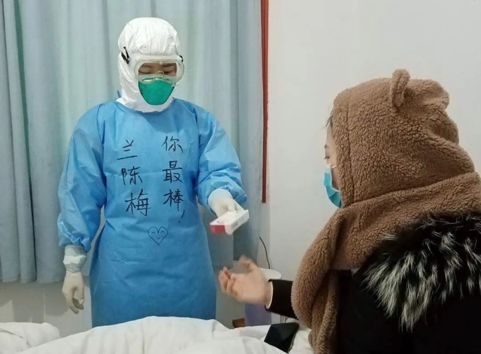 “轻伤不下火线,疫情面前,作为医护人员,应该勇往直前。在此,我向党和人民许下庄严承诺,自愿加入中国共产党,入党是我要走的路,能在这个时候加入党组织我感到无比光荣。"