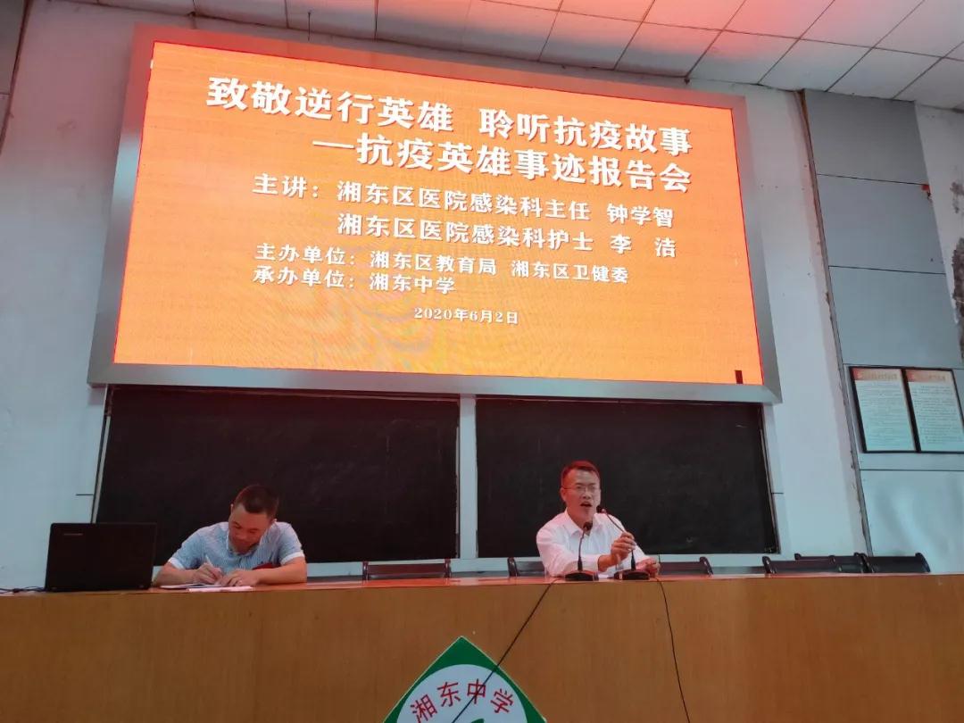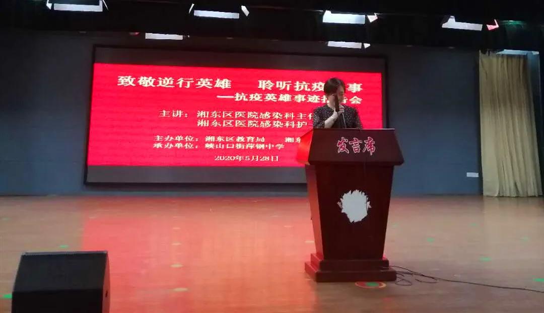 5月28日、6月2日,湘东区人民医院抗疫英雄援鄂护士李洁、感染科主任钟学智分别走进萍钢中学与湘东中学,向同学们宣讲他们的抗疫故事,分享他们的亲身经历和感悟,为湘东学子做表率。
