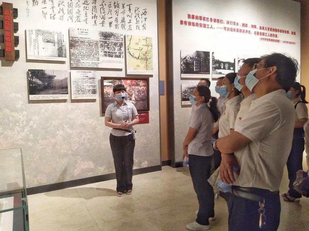 首先,湘东区人民医院党支部来到安源纪念馆参观,在纪念馆讲解员声情并茂地讲解中,全体参观人员通过一张张图片、一件件实物、一个个雕像,重温了毛泽东、刘少奇、李立三等老一辈无产阶级革命家领导安源路矿工人开展武装斗争,建立新民主主义的波澜壮阔的革命历史,深切地感受到无产阶级革命家的气节与胸怀。大家边走边听边看,不时驻足,交流感悟。深切感受到革命先烈的丰功伟绩和现在的幸福生活来之不易。