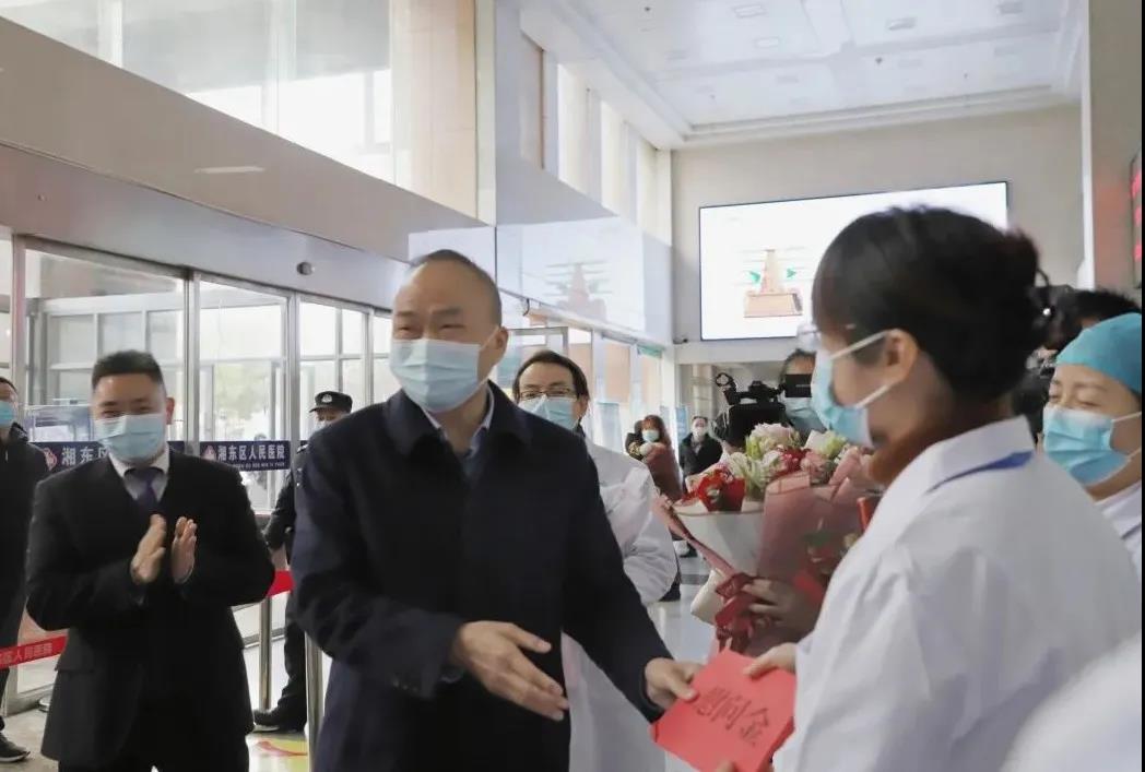 委书记杨博表示,疫情防控是一场没有硝烟的战争,医院是疫情防控的主战场,在危难时刻,医务工作者迎难而上,以实际行动彰显了医者的使命和担当,全力保障广大人民群众的生命安全和身体健康。他衷心祝福医院在新的一年取得更加辉煌的成绩。我院衷心感谢区委、区政府的关心和慰问。区委、区政府的重视极大地鼓舞了我院医务人员的士气。新的一年,我们将继续守初心、担使命,践行“健康所系,生命相托”,弘扬伟大抗疫精神,锐意开拓进取,矢志改革创新,坚定必胜信心,凝聚磅礴力量,努力做健康中国的践行者和健康湘东的引领者,努力做人民美好生活的创造者和人民生命健康的守护者,努力建设更高质量、更有温度、更加卓越、更受尊敬的医院。