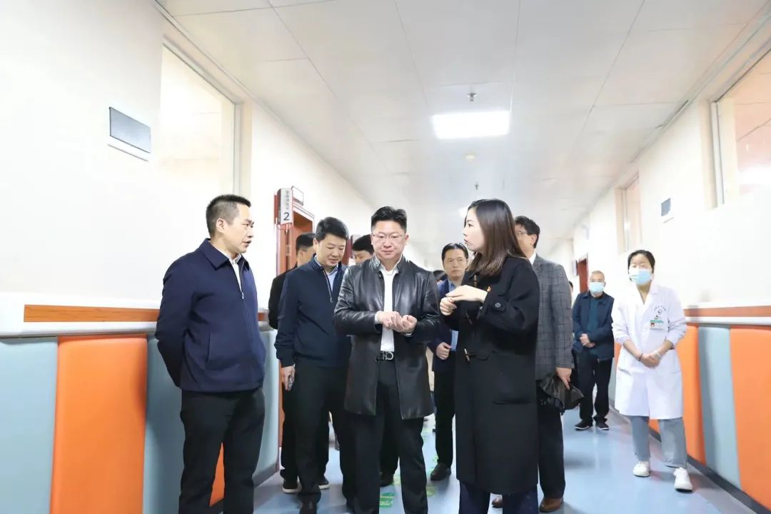 3月17日上午,井冈山市市委常委、市人民政府副市长张峻山带领市卫健委主任尹虎生、市医保局党组书记刘智华等一行11人到湘东区总医院参观交流紧密型医共体建设工作,区委常委、统战部部长汤如龙、区政府副区长周菁、总医院院长苏晓清等同志陪同参观交流。