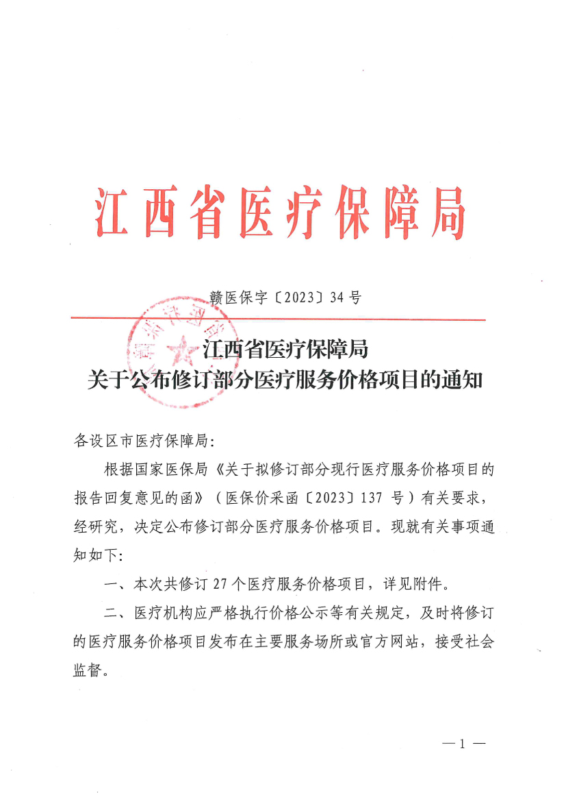 萍医保字[2023]46号萍乡市医疗保障局转发江西省医疗保障局关于公布修订部分医疗服务价格项目的通知